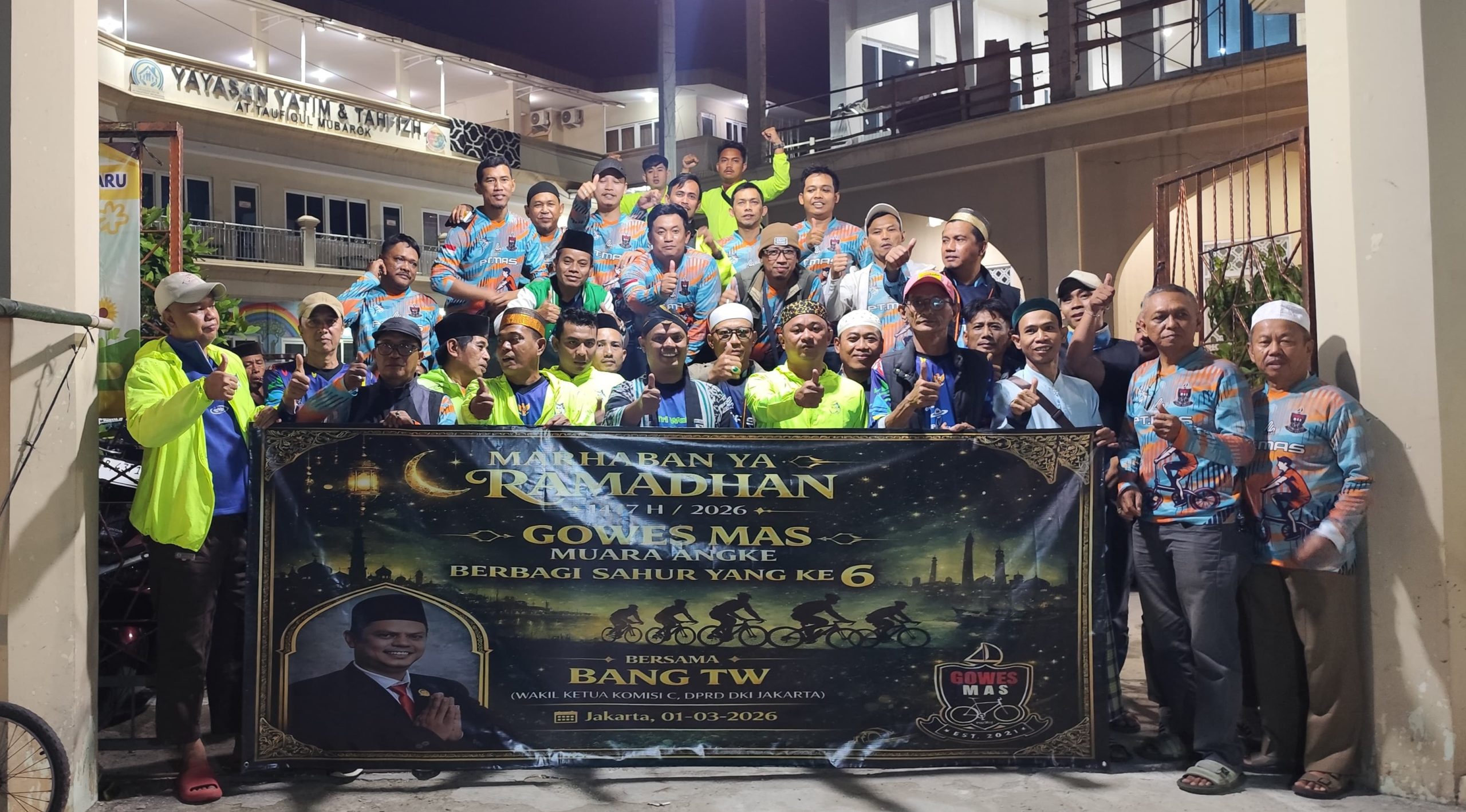 Faktaexpose.com, JAKARTA – Komunitas sepeda Gowes Mas Muara Angkrle bersama anggota DPRD DKI Jakarta dari fraksi PKB Tri Waluyo membagikan nasi siap saji untuk makan saur kepada masyarakat wilayah sekitar Jakarta Utara.