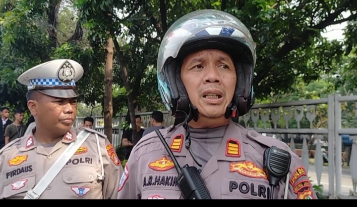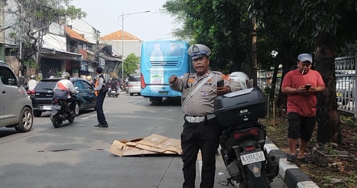 Kanit Lantas Polsek Grogol Petamburan AKP Arief Rahman Hakim, saat di lokasi mejelaskan kejadian kecelakaan itu.