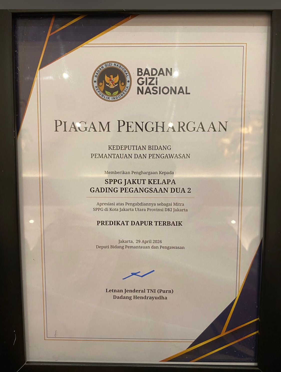 Faktaexpose.com, JAKARTA — Badan Gizi Nasional melalui Kedeputian Bidang Pemantauan dan Pengawasan memberikan penghargaan kepada SPPG Jakut Kelapa Gading Pegangsaan Dua 2 atas dedikasi dan kinerjanya dalam mendukung program gizi nasional.